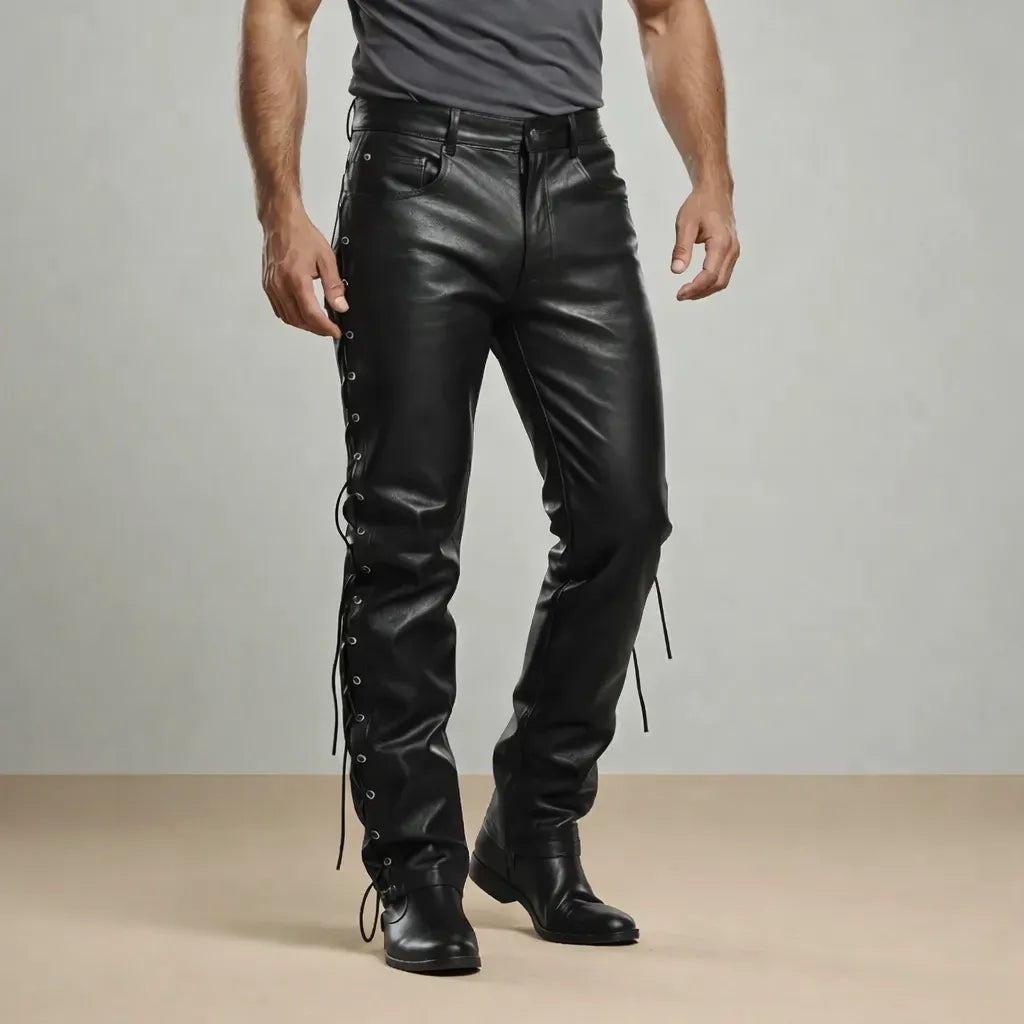 - Unleash your bold style with these Steampunk Leather Pants with Laces, combining rugged Victorian design, adjustable fit and striking details for a powerful look !