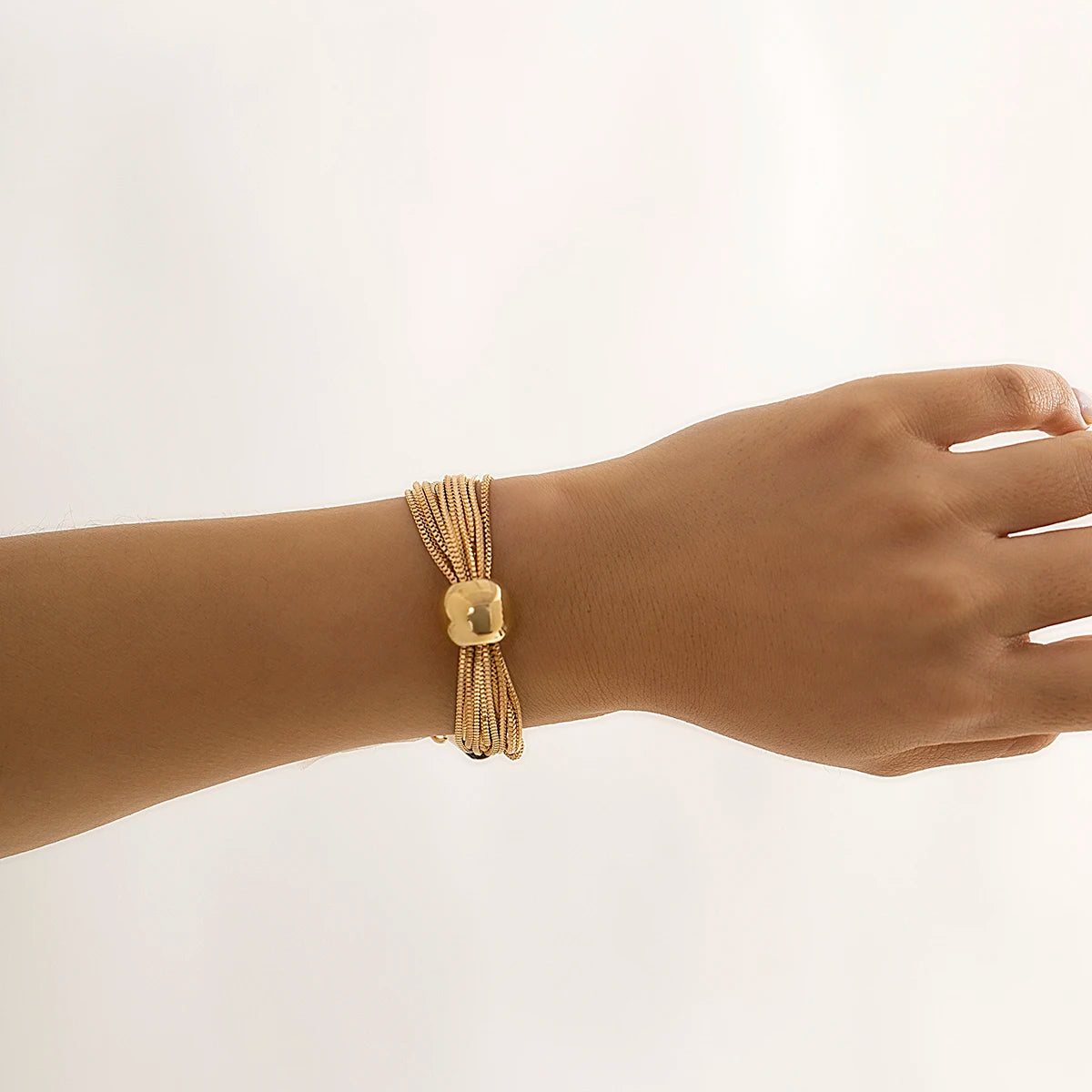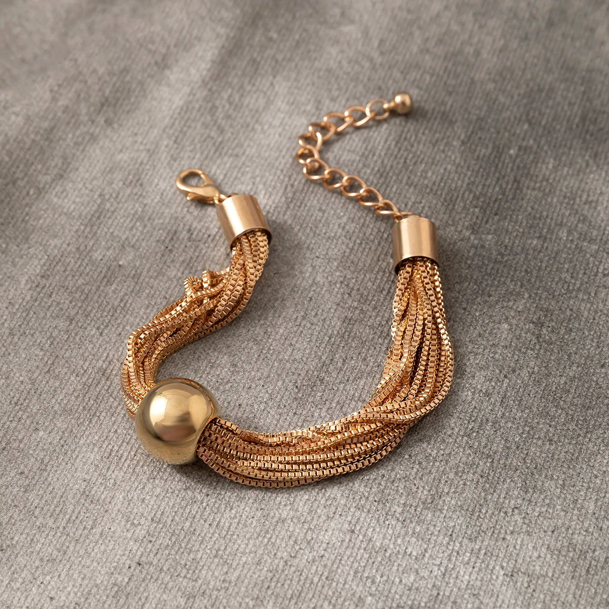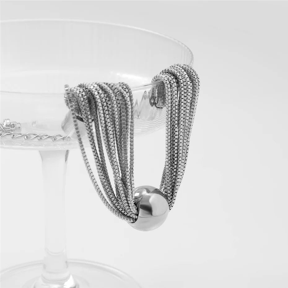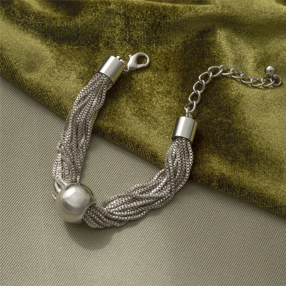 Crafted for individuals who appreciate bold accessories, this bracelet combines durability with expressive design. The intricate multi-chain structure reflects light beautifully, enhancing its industrial character. The smooth spherical pendant anchors the composition with a vintage touch. Built with a strong lobster clasp and reinforced chain ends, it offers reliable daily wear. Whether styled casually or for an evening event, it brings confidence, attitude, and distinctive personality to your look.