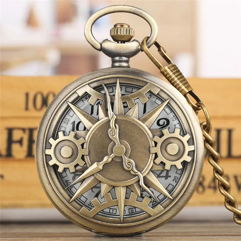 This steampunk pocket watch features a striking hollow-out gear cover inspired by classic mechanical artistry. The minimalist gear motif adds depth while keeping the overall look clean and balanced. Its round silhouette and antique bronze tone give it a timeless character. Designed for men and women, this piece works as both a fashion accessory and a functional timepiece, perfect for casual outfits, retro styling, or meaningful gifting.