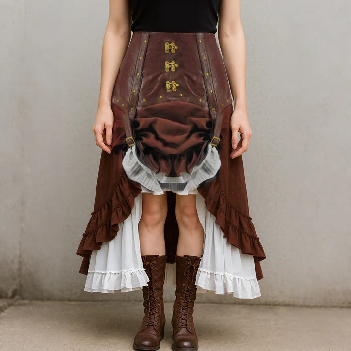 Thanks to its design and colors, this skirt brings you to a unique ambiance. The Steampunk Saloon Skirt is incomparable, longer than the average it gives you more steampunk style and is perfect for a Victorian or Steampunk party.