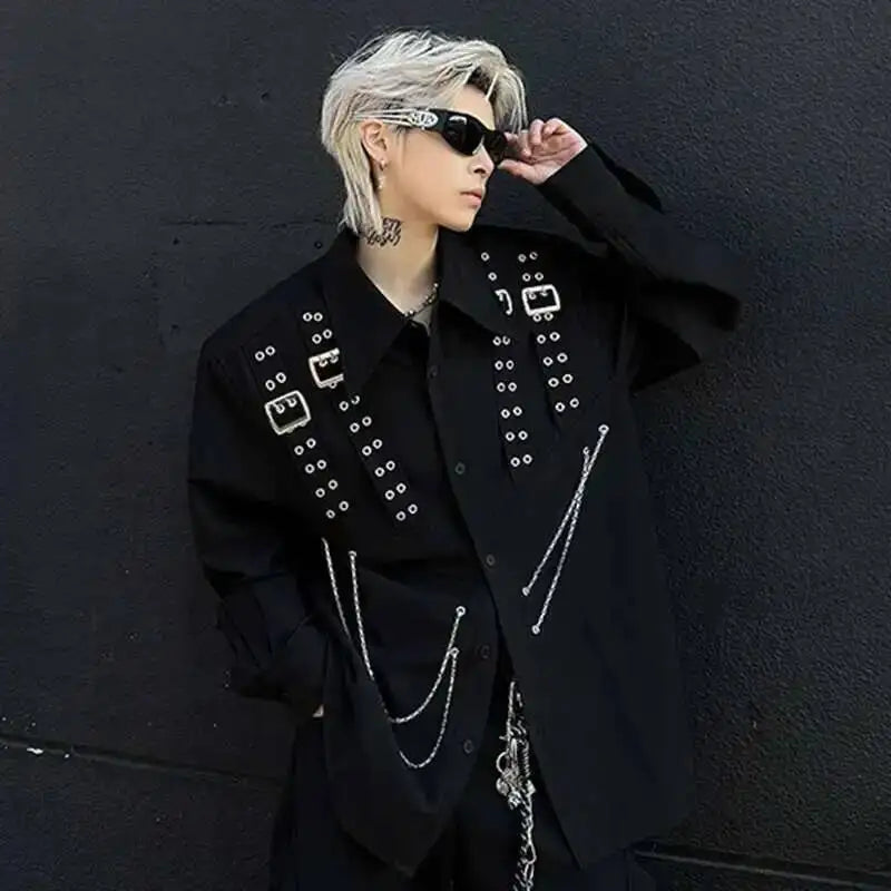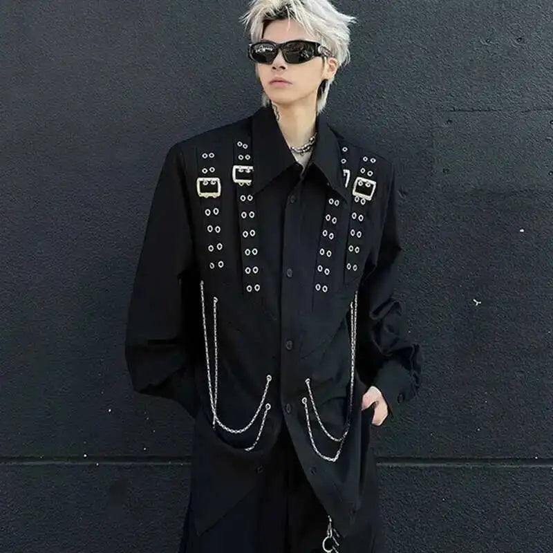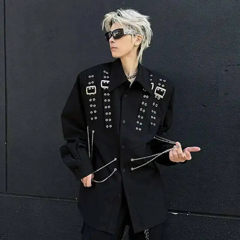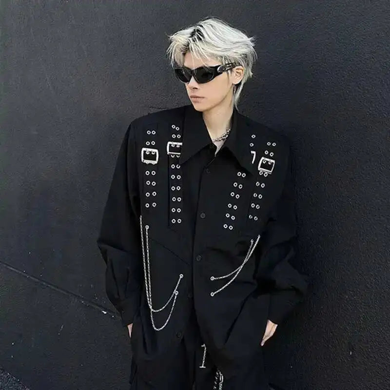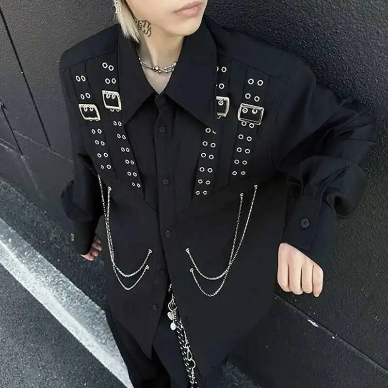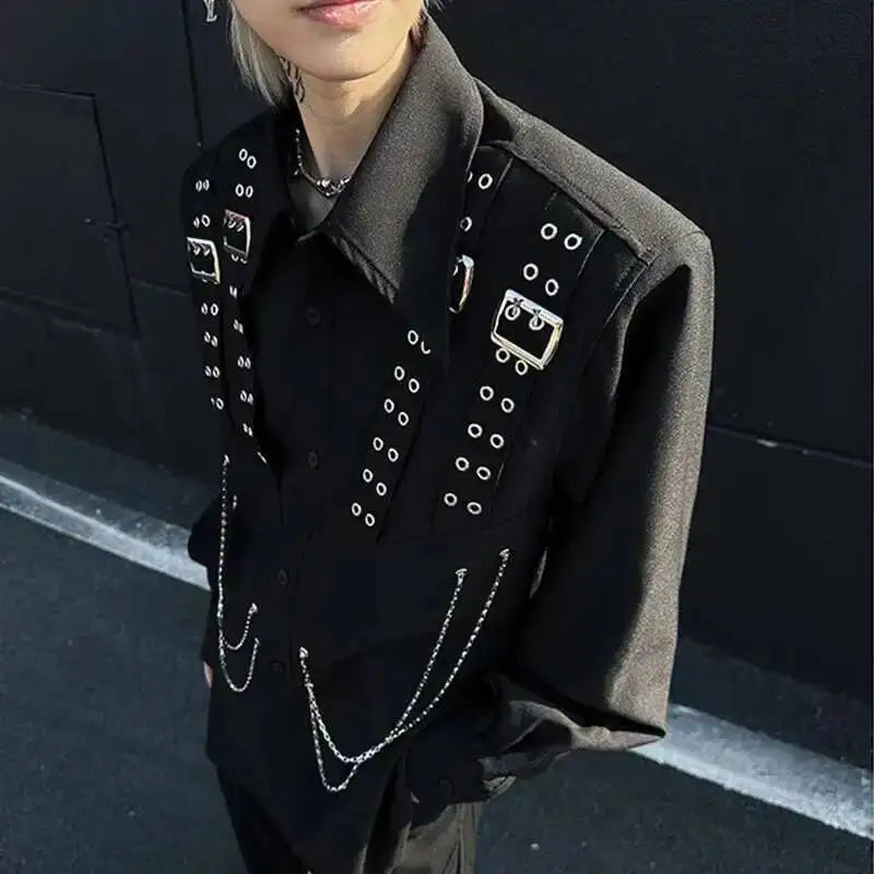 Dare a Rebellious Look with the Steampunk Shirt with Metal Chains in a Bold, Mechanical Style