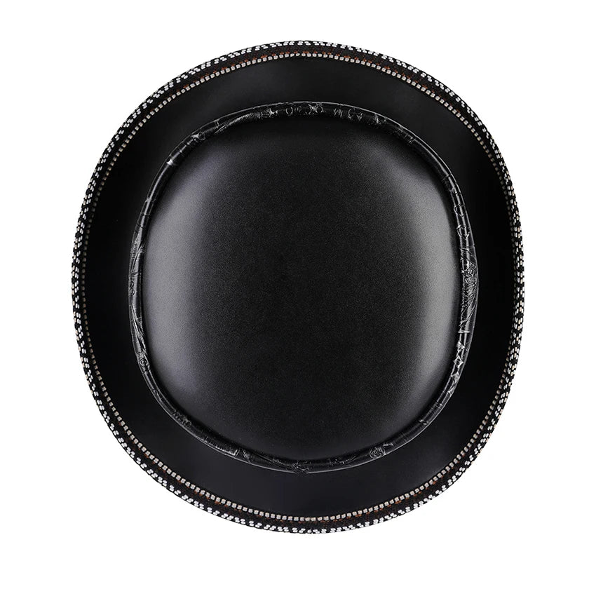 Get ready to captivate everyone's attention with this bold accessory that blends the rebellious spirit of rock with the elegance of Steampunk style. This black top hat stands out with its imposing central crest featuring an embroidered skull surrounded by delicate roses, symbolizing a striking contrast between strength and poetry. Whether you're an alternative fashion enthusiast or a collector of unique items, this hat will instantly become the centerpiece of your wardrobe.
