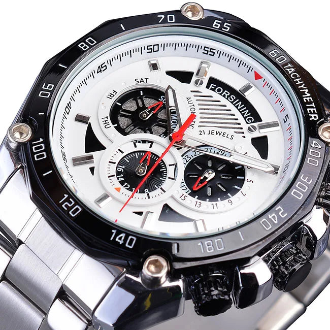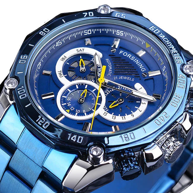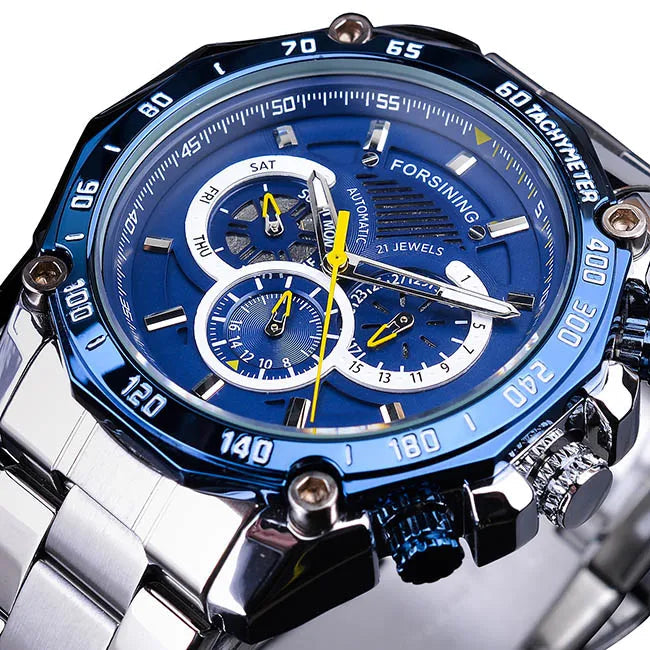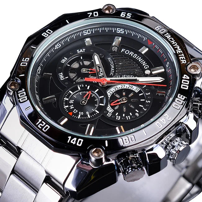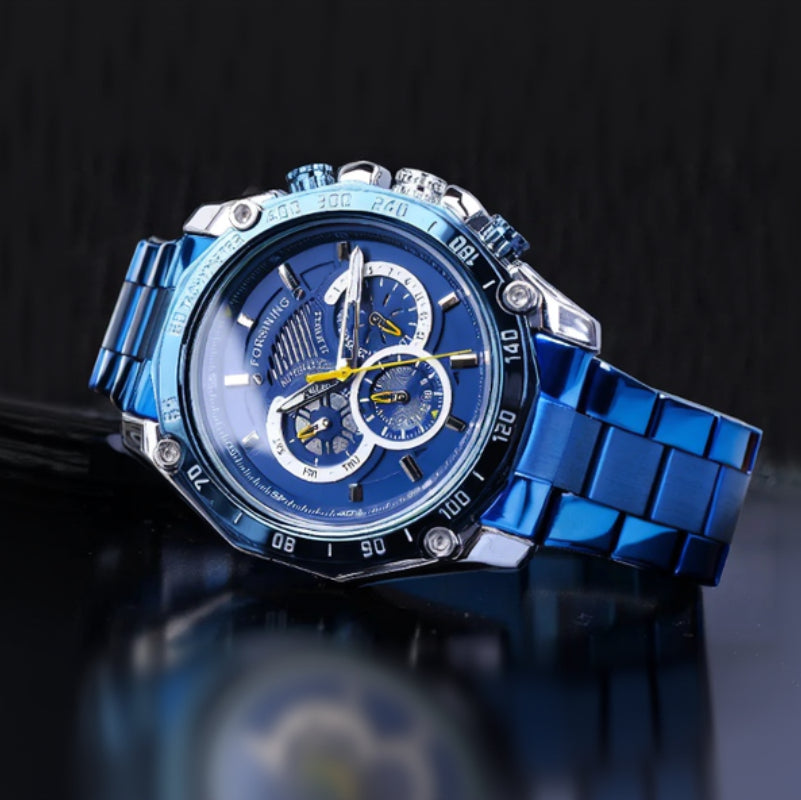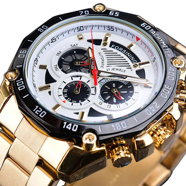The dial features multiple integrated subdials that provide a complete and organized time reading. The elements are arranged in a balanced way to maintain good visibility without visual overload. The central hands stand out clearly, making everyday use easier. The overall design creates a dynamic watch, where each detail follows a functional approach while maintaining a subtle and consistent steampunk identity.