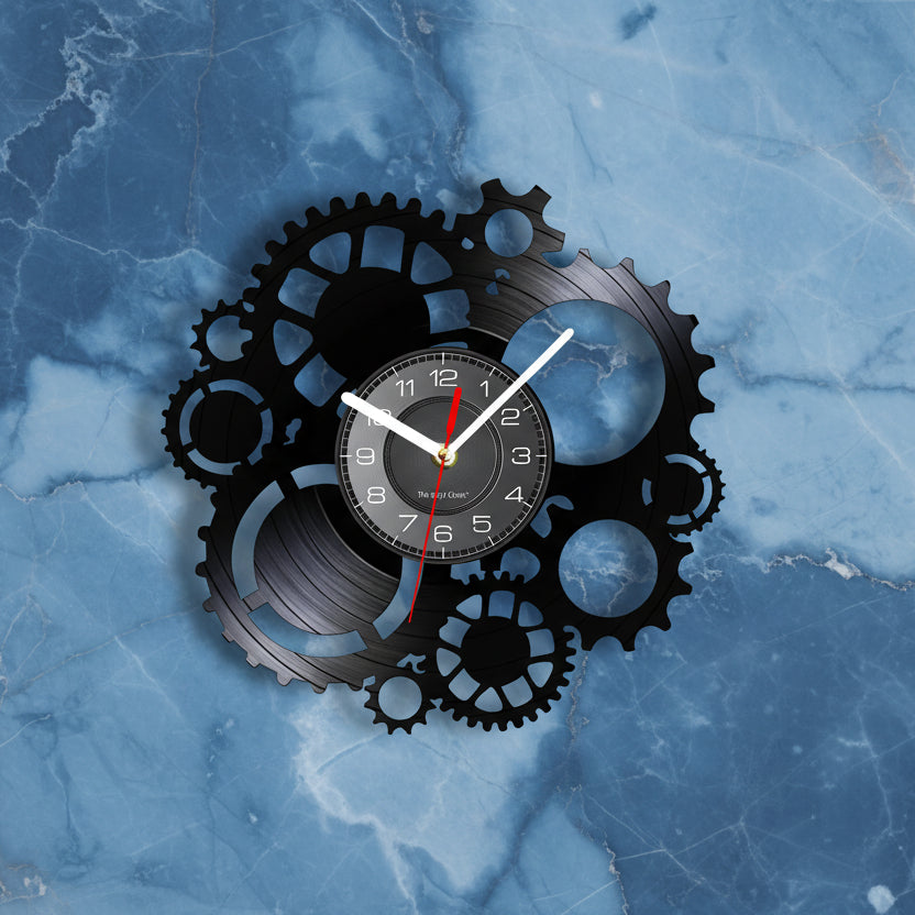 - Elevate your décor with this steampunk vinyl record gear clock, blending vintage gears with modern functionality.