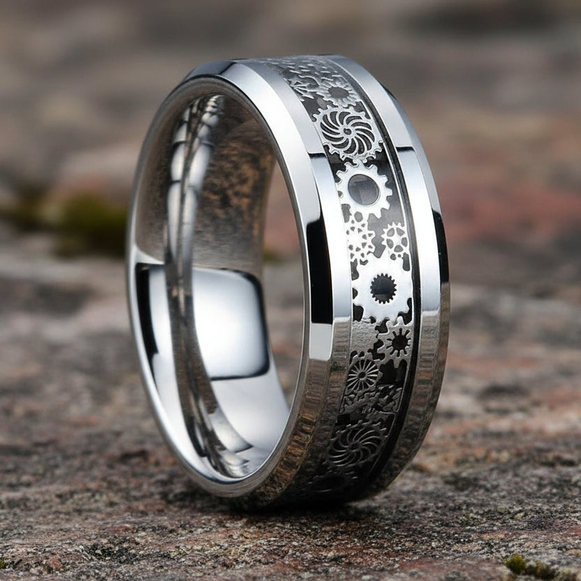 - Design: Features steampunk-inspired gears etched into the ring’s center.