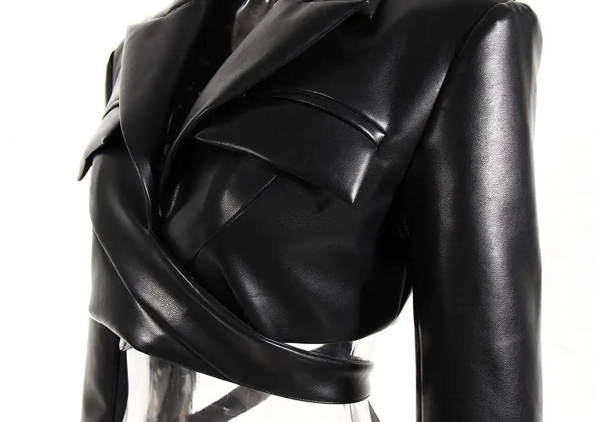 Get ready to embrace edgy elegance with this PU leather jacket, designed with spliced bandage detailing and lace-up accents. The loose sleeves and comfortable fit make it a perfect layering piece for autumn and winter. Whether you're headed to a gothic event or just out for a casual day, this jacket provides the perfect balance of style and function, offering a flattering silhouette that moves with you.