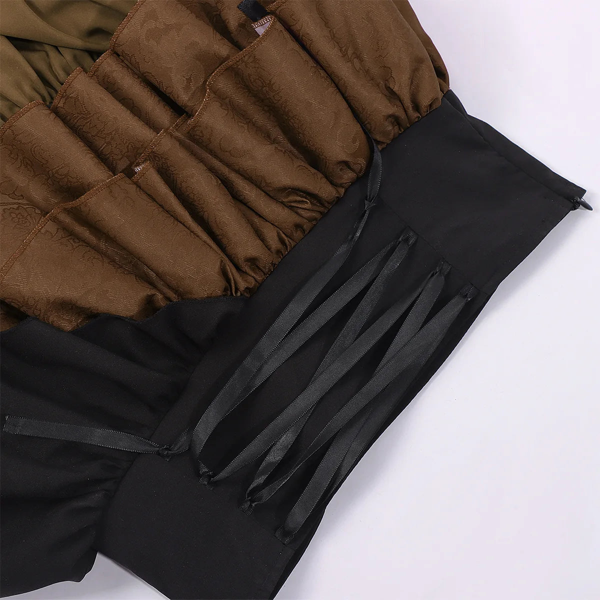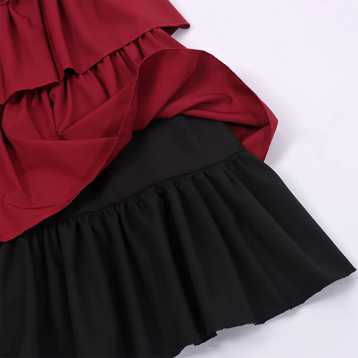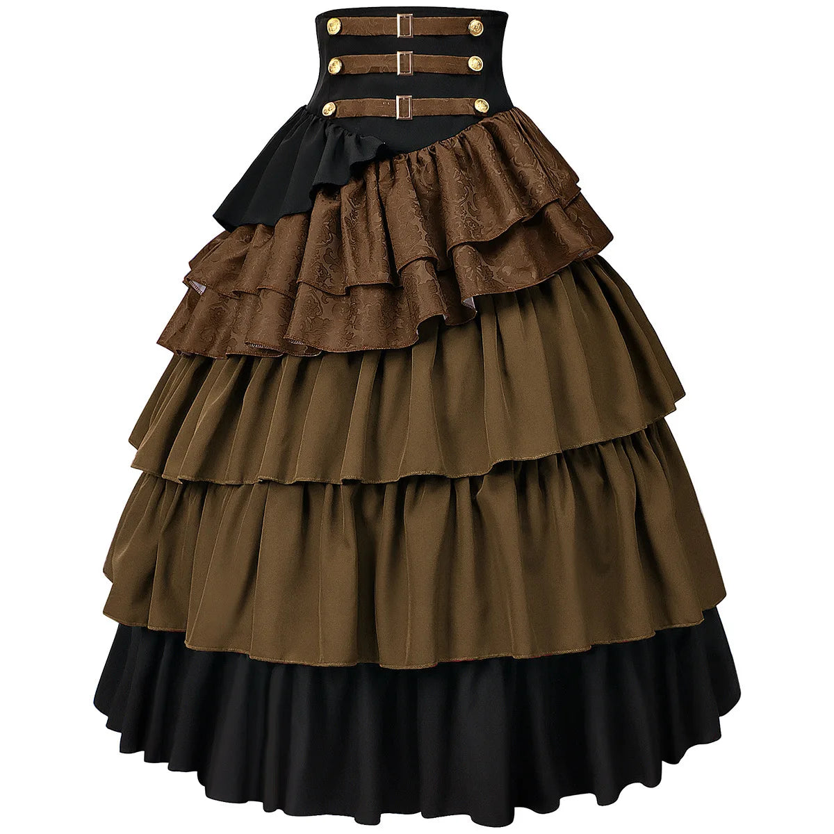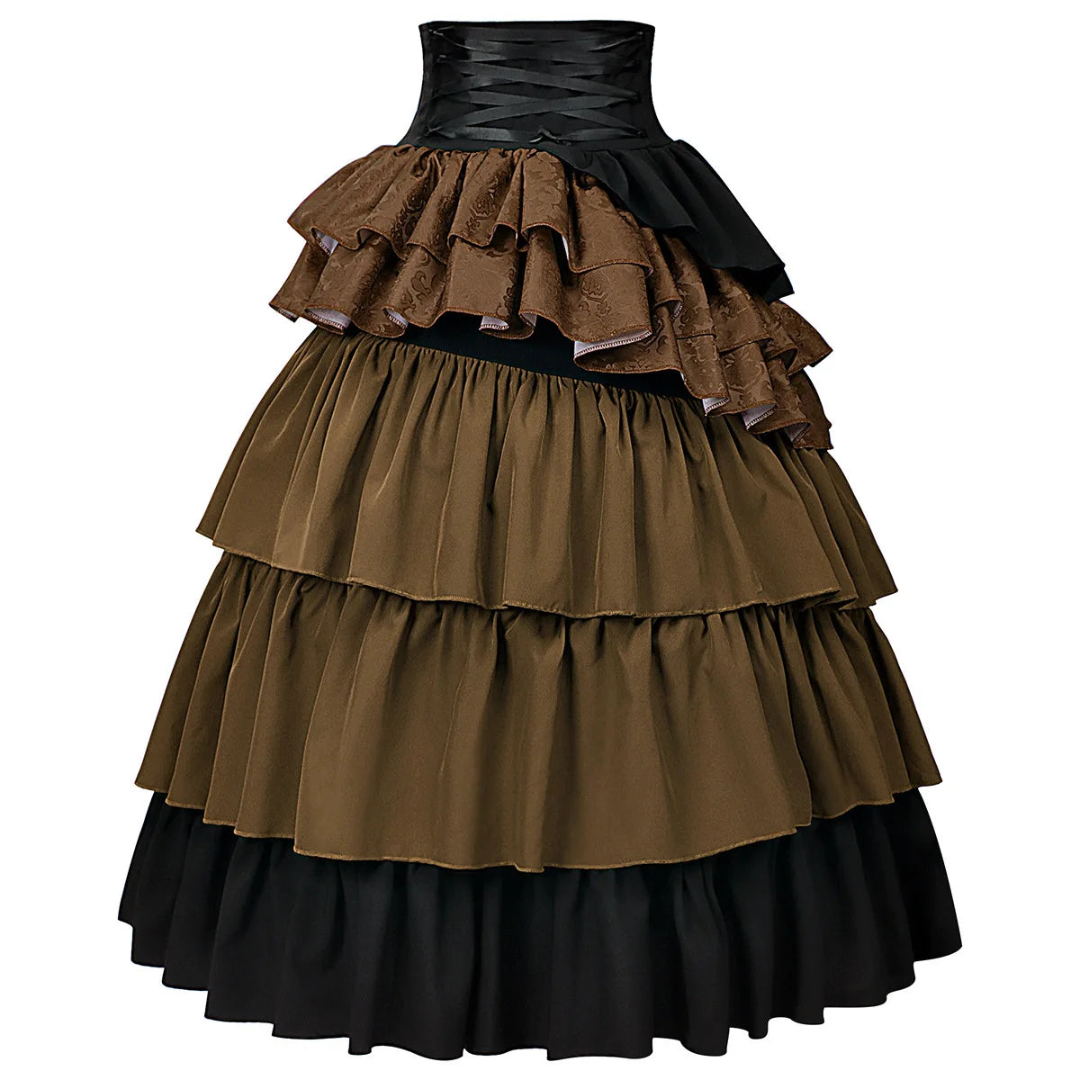 Inspired by Victorian and medieval pirate aesthetics, this steampunk skirt is designed for women who want a dramatic and confident look. The structured corset waist enhances the silhouette while the layered ruffles add volume and movement. Its rich color contrast and detailed finishes create a strong visual identity, making this skirt a standout piece for alternative wardrobes, cosplay outfits, or themed events where character and style matter.