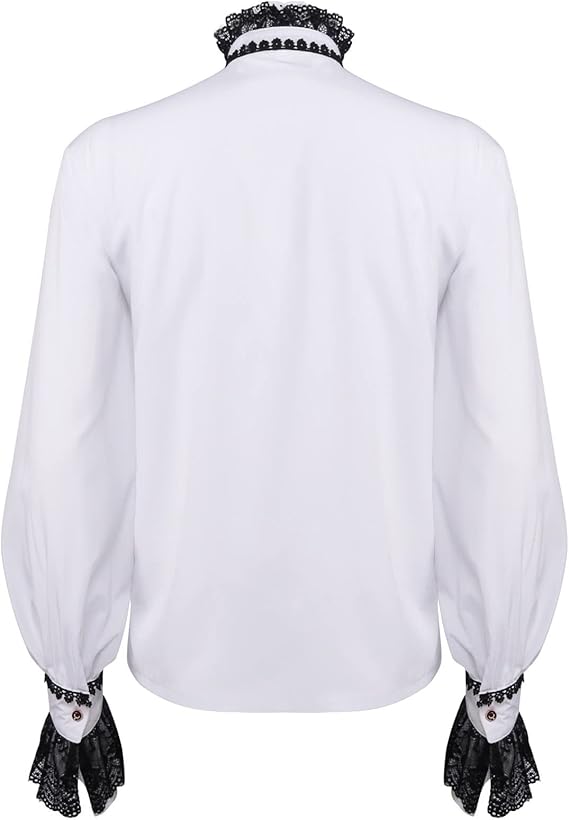 Crafted from smooth polyester, this shirt offers a soft touch while maintaining its structured form. The long sleeves and lace-trimmed cuffs add texture without restricting movement. Decorative elements are carefully integrated to ensure durability during extended wear. Designed for versatility, it allows effortless transition between cosplay, theatrical roles, and statement fashion, delivering confidence and visual depth in every setting.