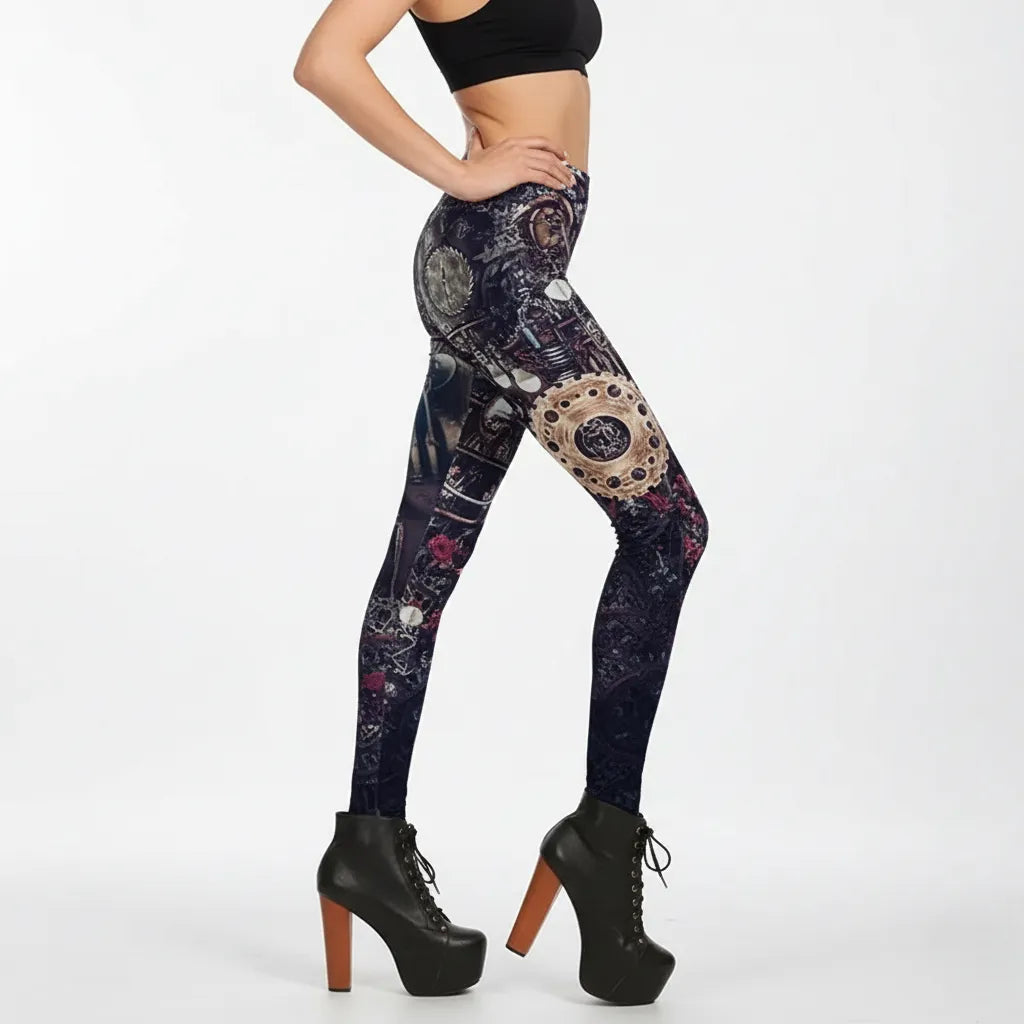 - Show off a bold look with these women's steampunk printed leggings, perfect for adding a unique mechanical touch and comfort to your outfits.